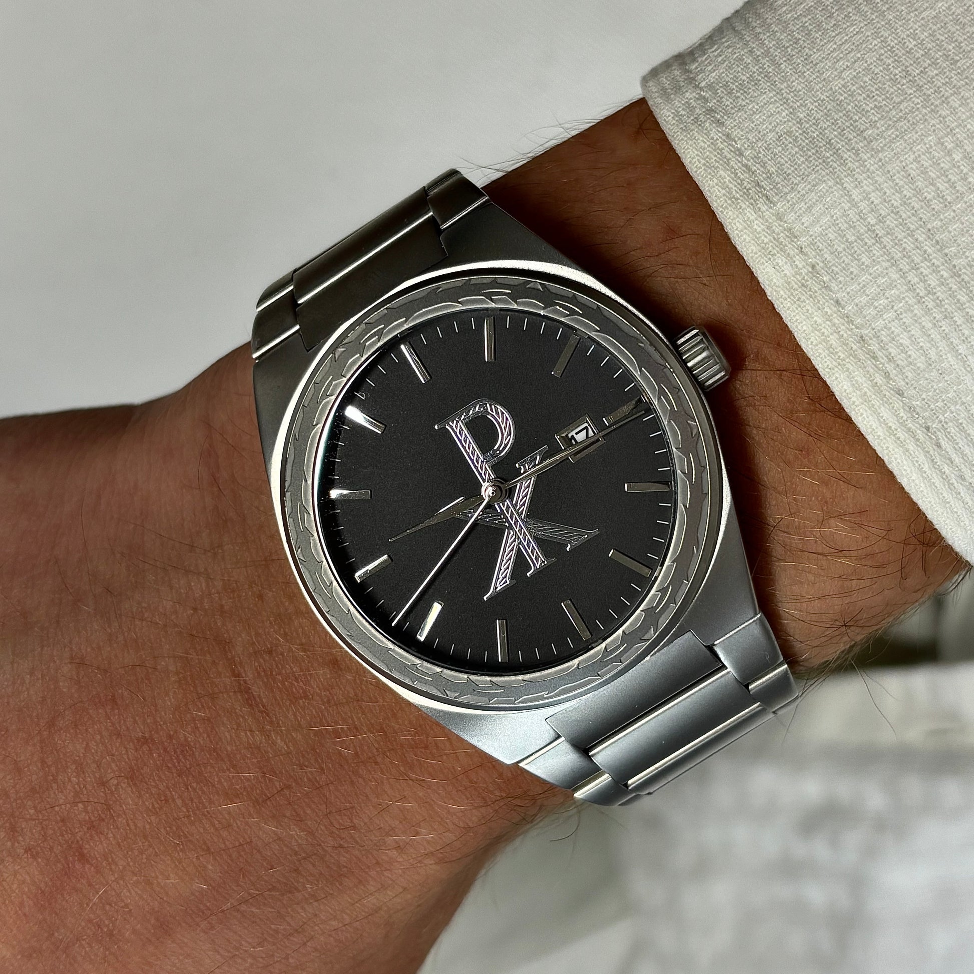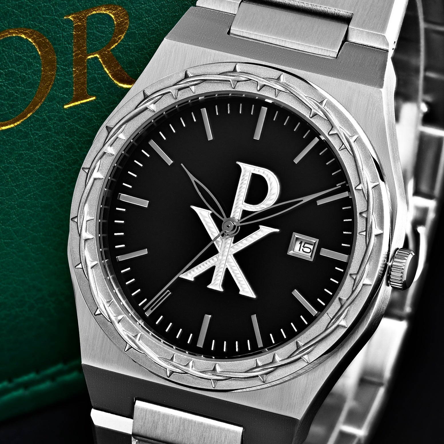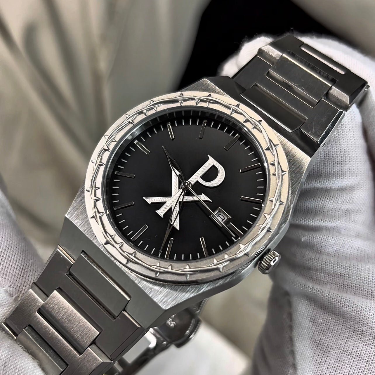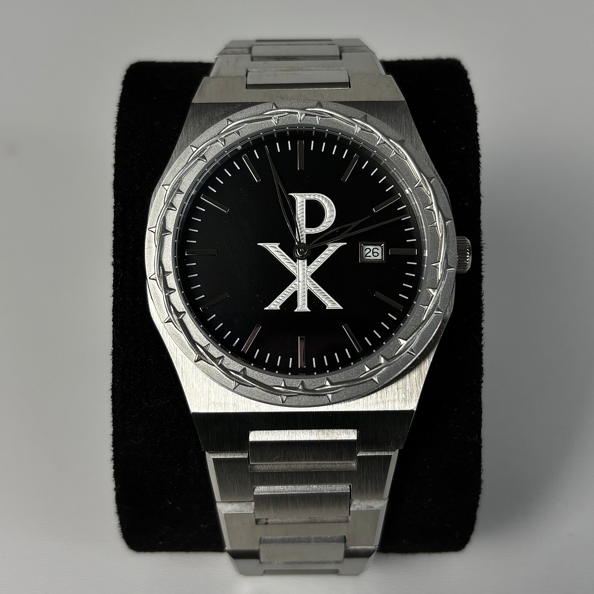 Yes – the watch features a 3D Chi-Rho symbol in the center, while the bezel is crafted with a detailed 3D crown of thorns engraving.